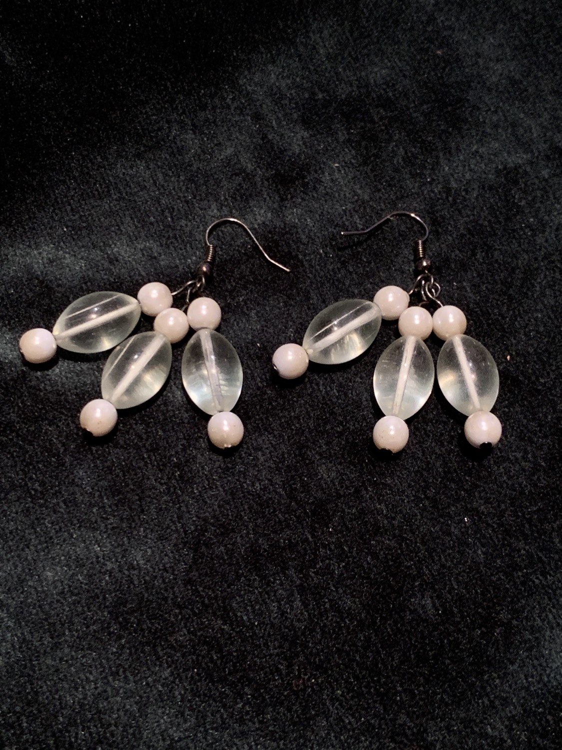 Triple clear and pearl earrings