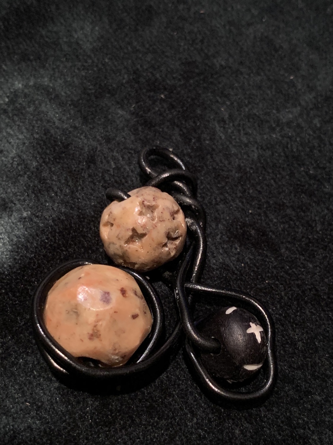 Black wire coil and brass beads